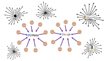 והם ניגשים, וקוראים את התכתובות ומתרשמים מהתמונות וצופים בסרטונים. ואז ממיינים את כל מידע הזה ומתעדים ומאחסנים אותו בחוות שרתים עצומות. ואז משתמשים בו כדי להשפיע על הרגלי הצריכה וזמני המסך והתפקוד השוטף של האליסים והבובים של העולם.