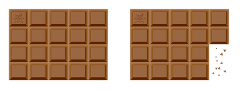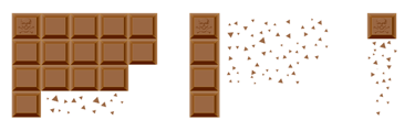 המשימה היא לקחת חפיסת שוקולד ולפרק אותה לחתיכות. אז אנחנו מרימים אותה ושוברים אותה לאורך אחד הקווים. ואז מרימים שוב את אחד החלקים ושוברים גם אותו. ואז מרימים עוד חלק ושוברים גם אותו וכך הלאה.